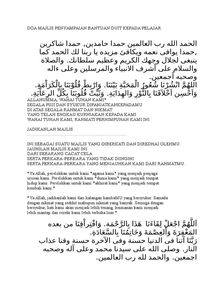 Doa Majlis Penyampaian Bantuan Duit Kepada Pelajar Pdf