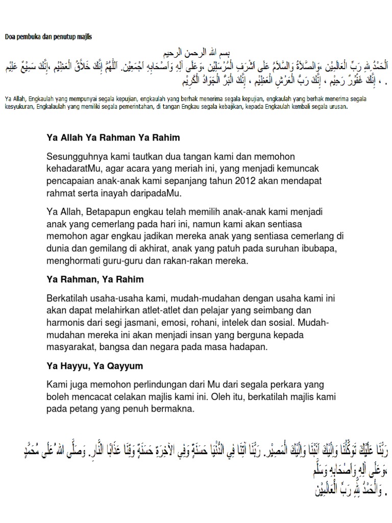 Doa Majlis Penyampaian Hadiah 2012 Pdf